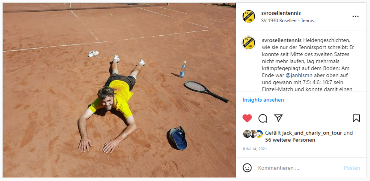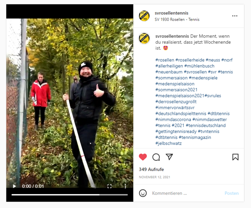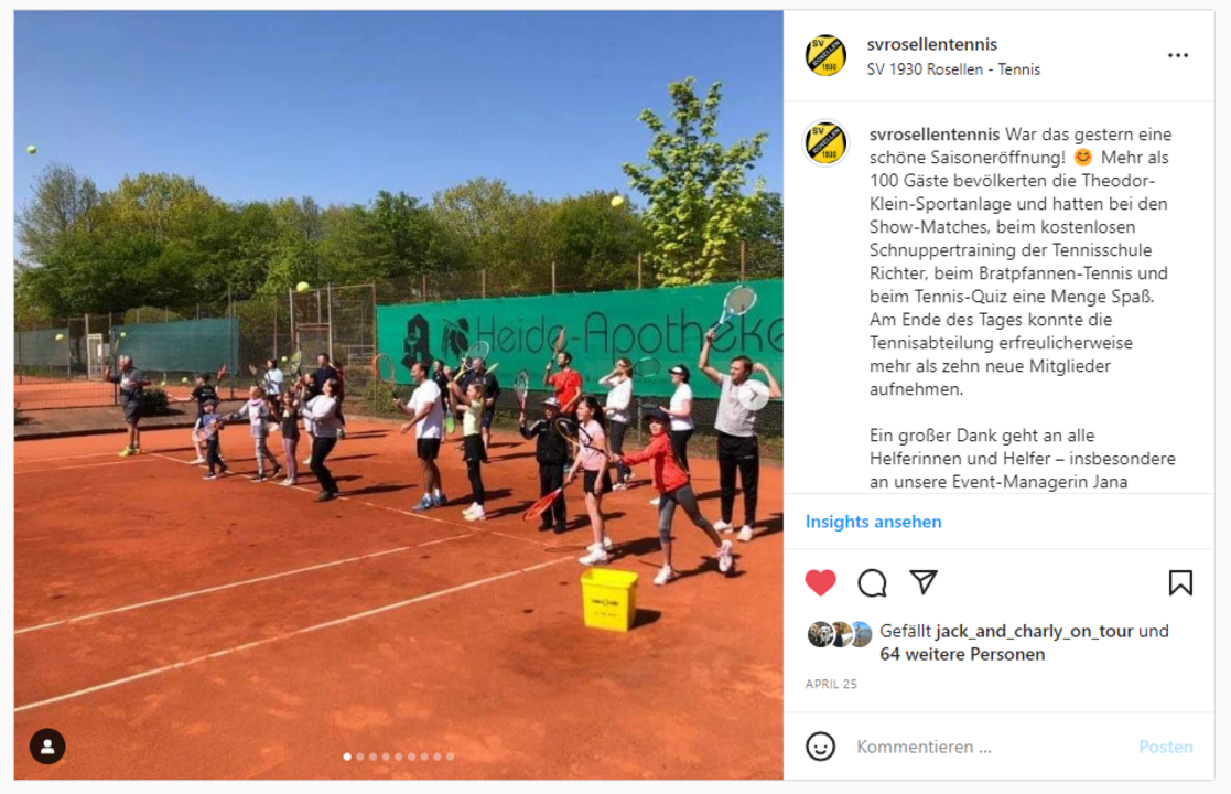 - aktiver Einbezug von Mitgliedern, indem diese von der Seite der Tennisabteilung in Postings und Storys verlinkt werden oder diese die Seite der Tennisabteilung verlinken