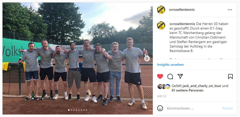 Hinsichtlich Sponsoring: Wir sind gerade dabei, neue Sponsoren zu gewinnen. Unsere digitale Reichweite ist da natürlich ein zentrales Argument, wenn es darum geht, die Attraktivität der Tennisabteilung des SV Rosellen hervorzuheben.